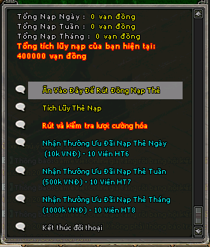 - Đồng nhận được tăng 40% ở các lần nạp tiếp theo